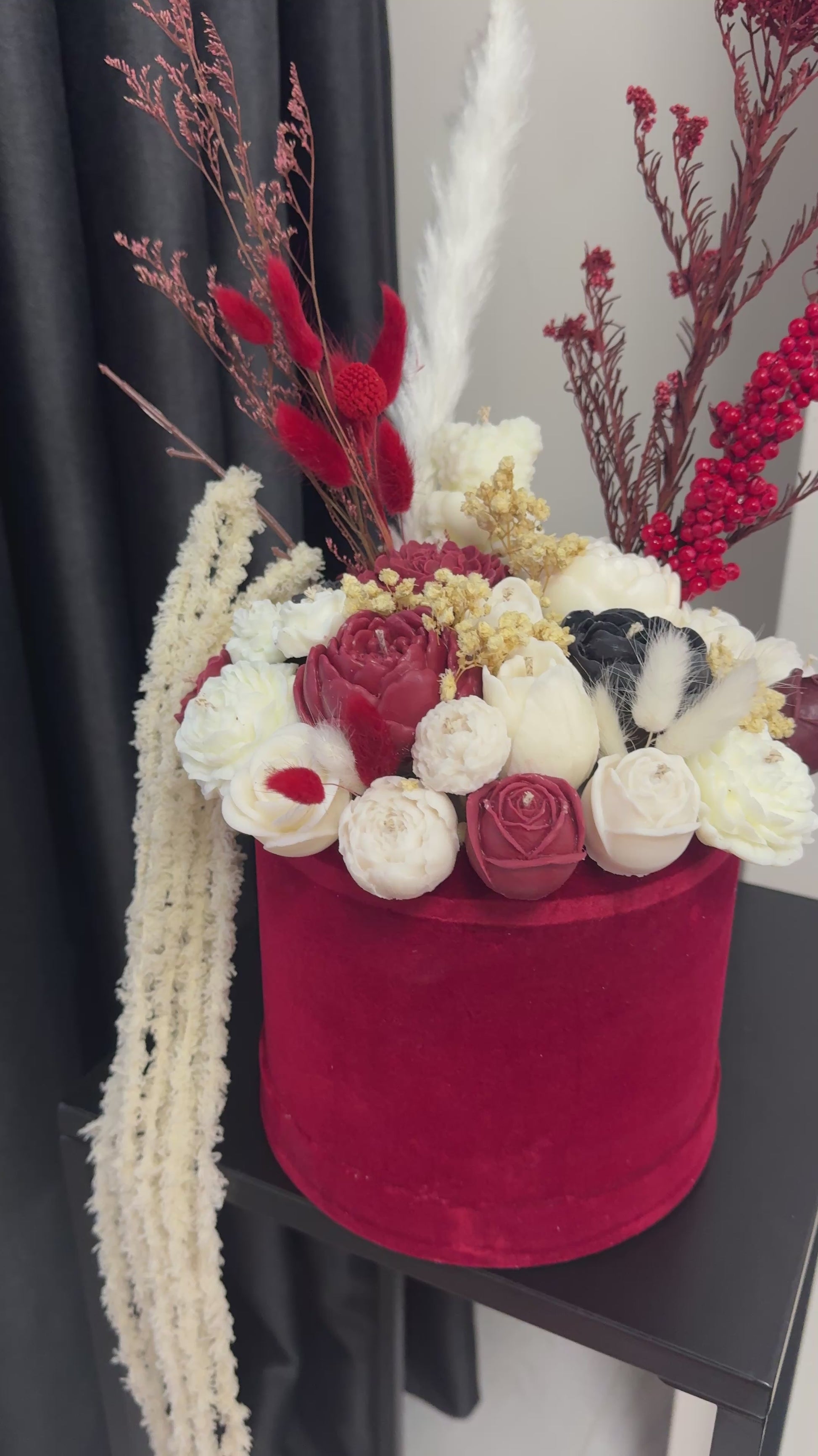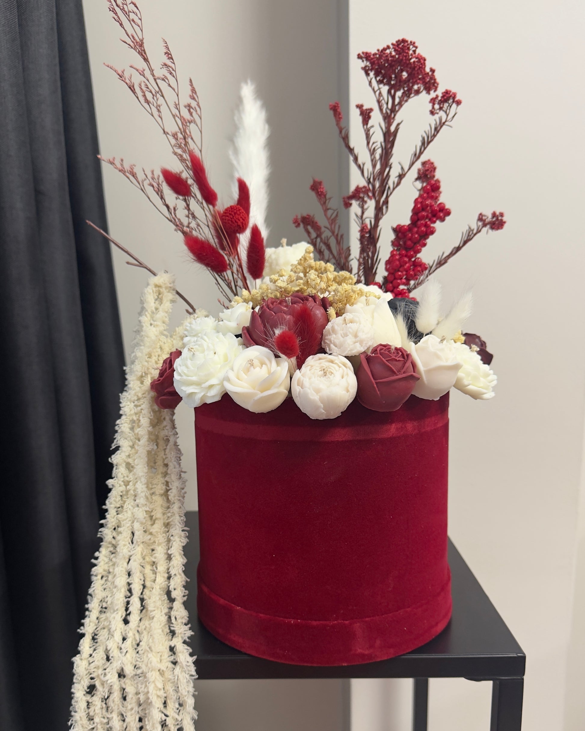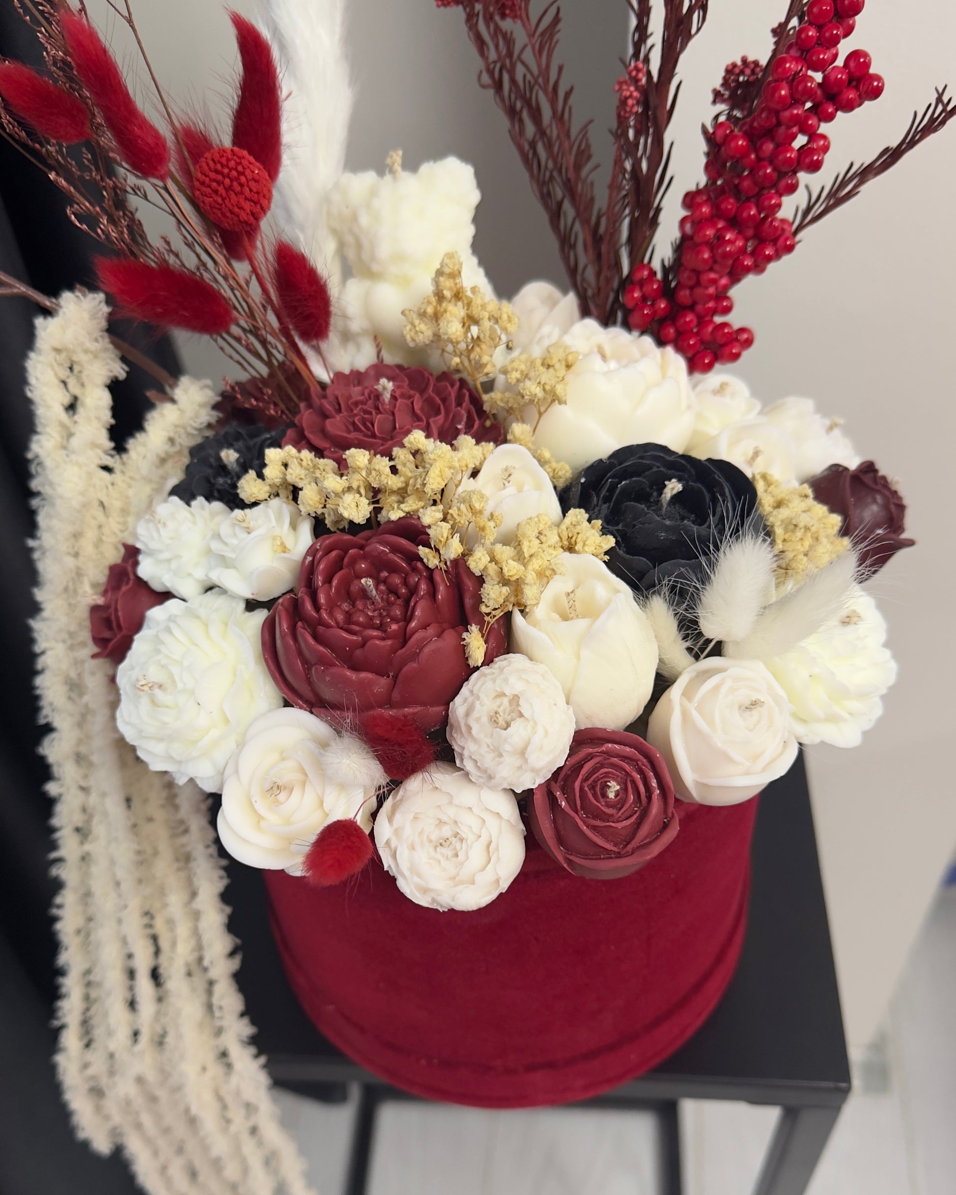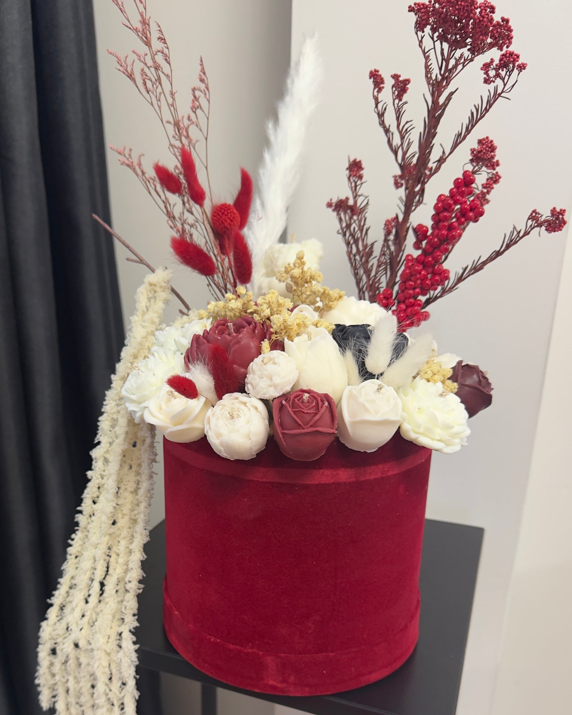 Букет от свещи в кадифена кутия - Бордо
